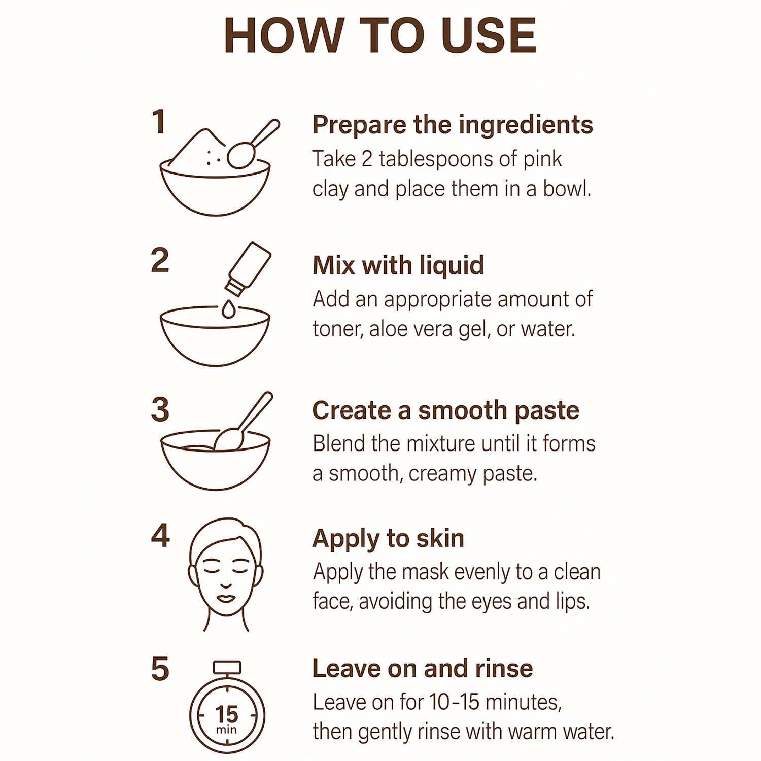 1.Prepare the ingredients: Take 2 tablespoons of pink clay and place them in a bowl.
